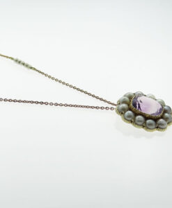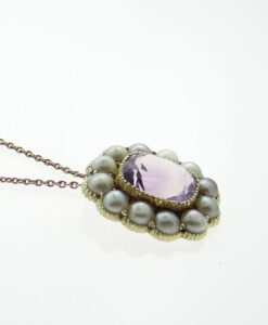 Antique 9ct Gold Amethyst and Pearl Pendant c1900