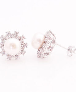 Sparkling Silver CZ and Imitation Pearl Cluster Earrings
