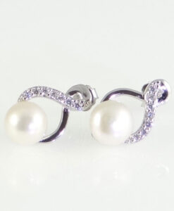 Sterling Silver CZ and Simulated Pearl Stud Earrings
