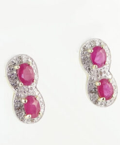 9ct Gold Double Ruby and Diamond Cluster Earrings