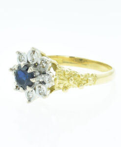 18ct Gold Diamond and Sapphire Flower Cluster Ring