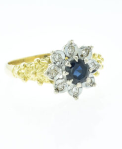 This is a very pretty 18ct gold diamond and sapphire flower cluster ring from the 1970’s.