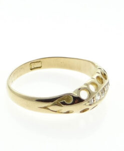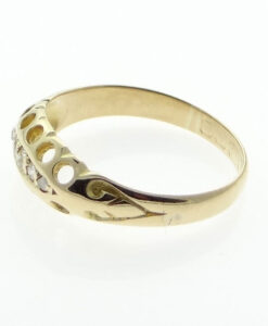 This is a pretty antique 18ct gold five Stone diamond ring.