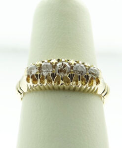 This is a pretty antique 18ct gold five Stone diamond ring.