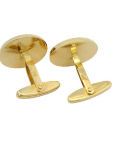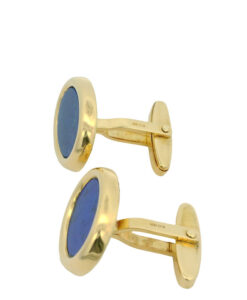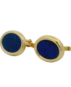 A distinguished pair of oval-shaped cufflinks crafted in rich 18ct yellow gold, each set with striking Lapis Lazuli gemstones. Originally retailed by the prestigious Garrard & Co of London, these timeless accessories exude classic British refinement.