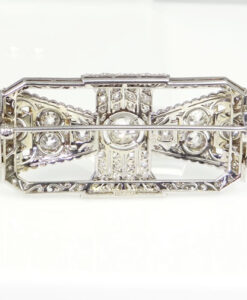 Art Nouveau 18ct White Gold and Platinum Diamond Brooch
