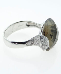 A sensational 18ct white gold Diamond and Smokey Quartz ring.
