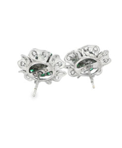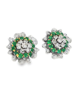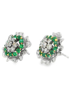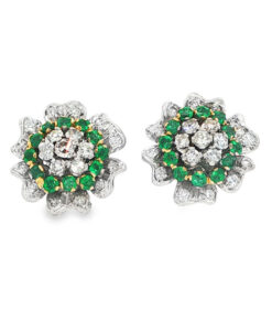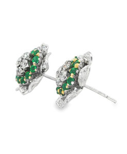 Vintage 18ct Gold Diamond and Emerald Floral Cluster Earrings – White & Yellow Gold