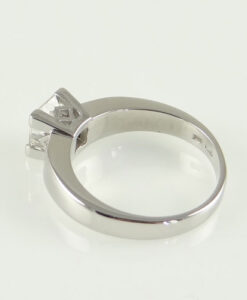 The sparkling diamond is square princess cut and has been set with four picture frame claws.