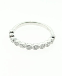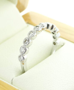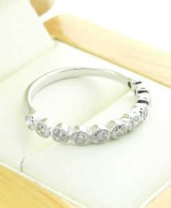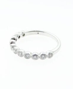 The eleven sparkling brilliant cut diamonds have been set with millgrain detailing around the edges.