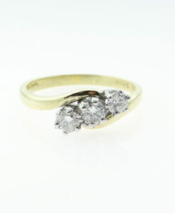 This beautiful ring is made from 18ct yellow gold and is set with a three brilliant cut diamonds.