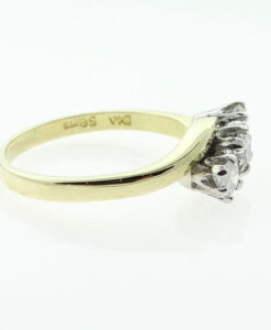 The three diamonds are claw set on a twist to give this ring a vintage look.