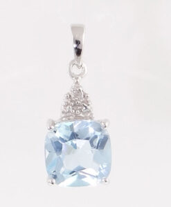 This is a beautiful Solid Sterling Silver pendant set with a square cut Blue Topaz gemstone and a sparkling accent Diamond.