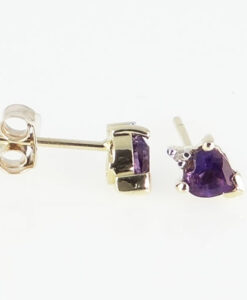 9ct yellow gold amethyst and diamond earrings set with a heart-shaped amethyst gemstone and a sparkling accent diamond.