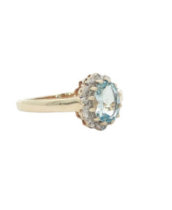 It is set with beautiful aquamarine gemstones.