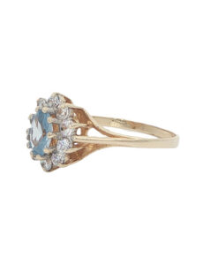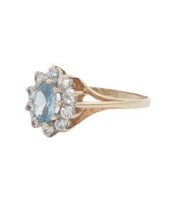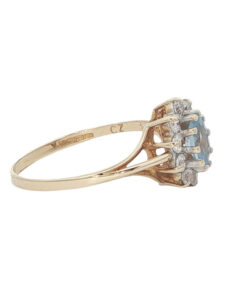 Classic 9ct Gold Blue Topaz and Cubic Zirconia Cluster Ring
