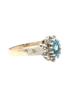Classic 9ct Gold Blue Topaz and Diamond Cluster Ring