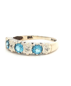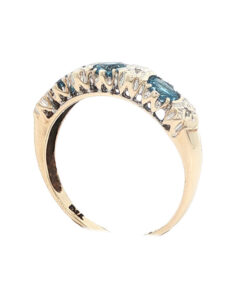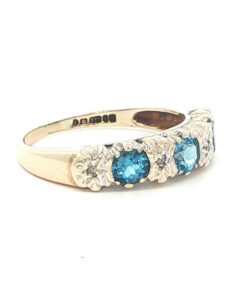 Vintage 9ct Gold Blue Topaz and Diamond Band Ring