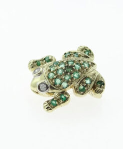 The body of the frog is set with emeralds and the eyes are made from sparkling diamonds.