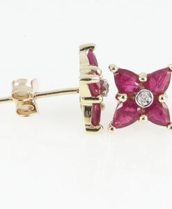 9ct Gold Four Stone Ruby and Diamond Cluster Earrings