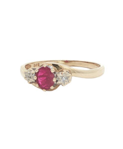 9ct Yellow Gold Ruby & Diamond Cross-Over Ring