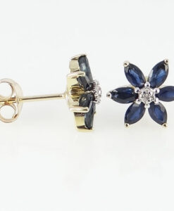 9ct Yellow Gold sapphire and diamond flower cluster earrings.