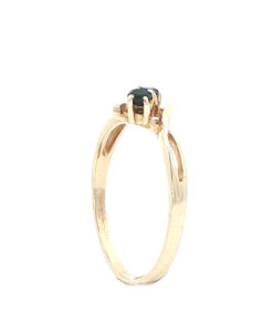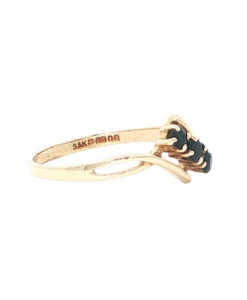 This pretty 9ct yellow gold ring features three round sapphires claw set in a crossover setting. The deep blue tones of the sapphires contrast perfectly against the warm glow of yellow gold.