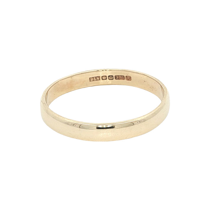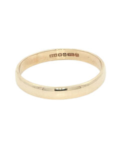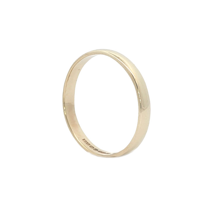This classic 9ct yellow gold wedding band exudes warmth and timeless elegance. Crafted in a traditional D-shaped profile, it offers a beautifully smooth, polished finish and a comfortable fit — a perfect symbol of enduring love and commitment.