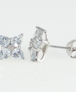 Each earring is set with four pear cut aquamarine gemstones and a sparkling diamond.