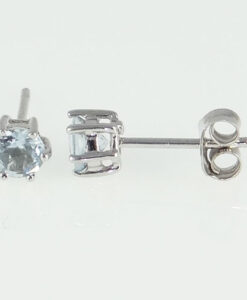 A Beautiful pair of 9ct white gold aquamarine solitaire stud earrings.