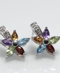 These gorgeous earrings are set with amethyst, peridot, garnet, blue topaz, citrine gemstones and accent diamonds.