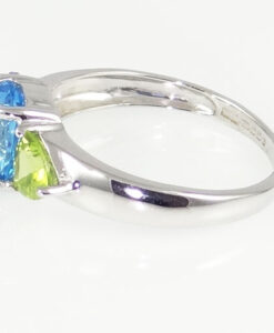 A stunning 9ct White Gold ring see with Amethyst, Blue Topaz and Peridot gemstones.
