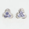 9ct white gold tanzanite and diamond cluster earrings set with four tanzanite gem stones and a sparkling accent diamond.