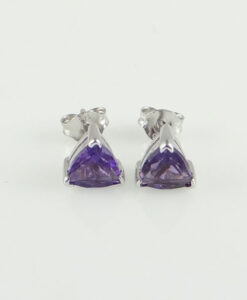 9ct White Gold Trillion Cut Amethyst Stud Earrings