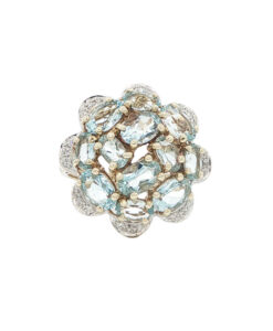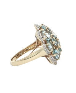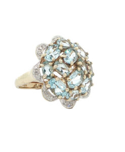 9ct Yellow Gold Diamond and Aquamarine Cluster Ring