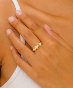 This fabulous ring is crafted in 9ct yellow gold and set with three glowing citrine gemstones, their golden tones radiating warmth and light. Adding a touch of sparkle, accent diamonds complete the design, making this ring truly eye-catching. Each stone is securely claw set, creating a sleek yet elegant look that shines beautifully on the hand.