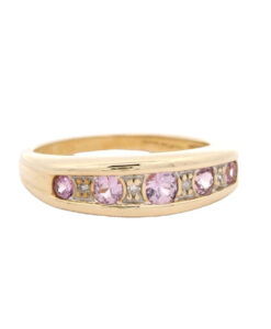 9ct Yellow Gold Diamond and Pink Sapphire Band Ring