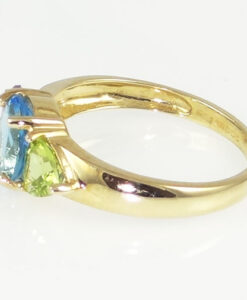 A gorgeous 9ct Yellow Gold ring set with Amethyst, Blue Topaz and Peridot gemstones.