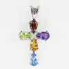 9ct Yellow Gold Mutli Gem Cross. This beautiful cross is set with garnet, peridot, amethyst, blue topaz and citrine gem stones.