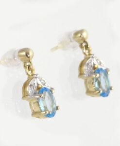 9ct Yellow Gold Oval Blue Topaz and Diamond Drop Earrings