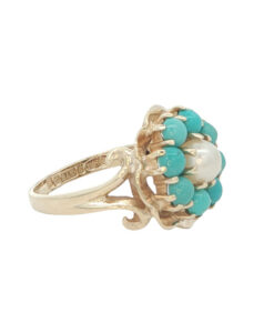 Vintage 9ct Yellow Gold Pearl and Turquoise Cluster Ring