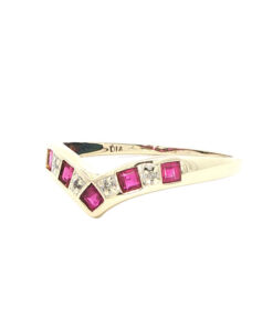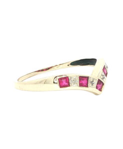 9ct Yellow Gold Ruby and Diamond Wishbone Ring