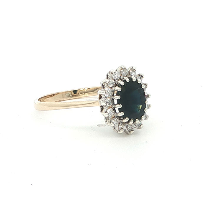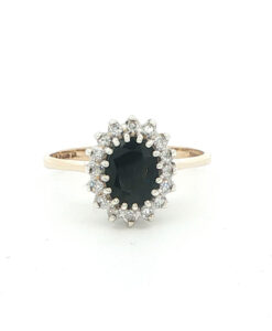 Classic 9ct Yellow Gold Sapphire and Diamond Cluster Ring