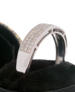 This stunning 9ct white gold band ring features three rows of sparkling diamonds, beautifully claw set within a channel giving this ring a timeless look.