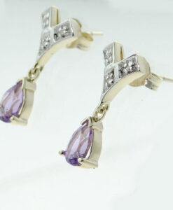 9ct Yellow Gold Amethyst and Diamond Drop Earrings