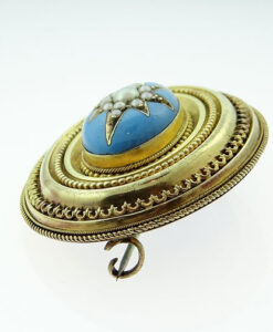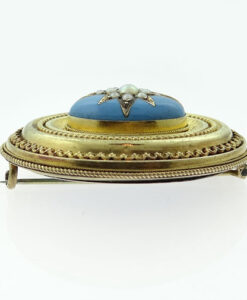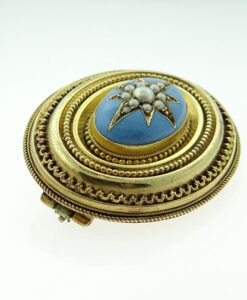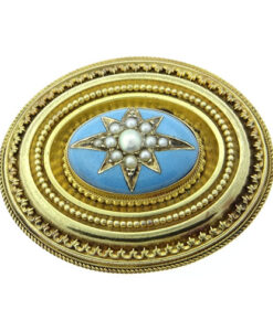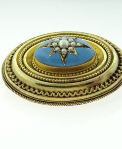 Antique 15ct Gold Pearl and Blue Enamel Mourning Brooch