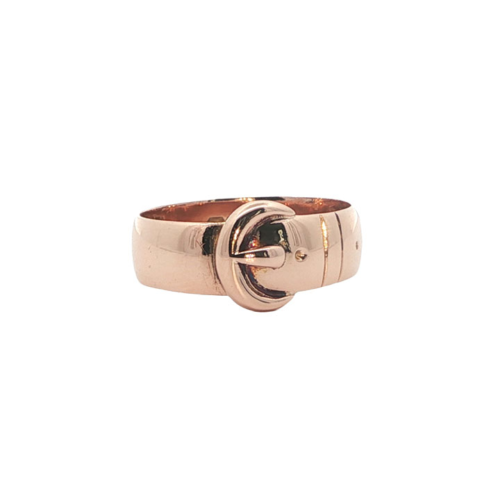 Crafted in warm 9ct rose gold, this fabulous buckle ring was made in 1918.