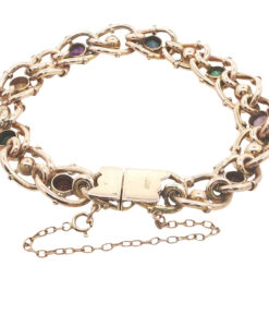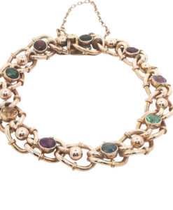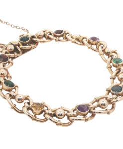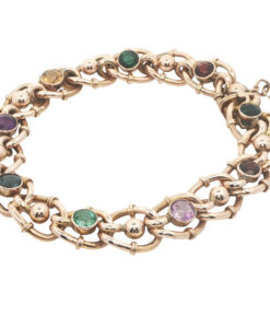 Antique 9ct Rose Gold Multi Gemstone Bracelet set with nine gemstones.