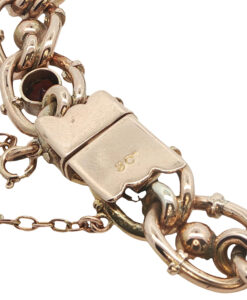 This beautifully made piece dates to around 1900 and is composed of fancy interlocking links measuring approximately 9mm x 13mm. It secures with a classic snap-in fastener and a safety chain for added peace of mind.