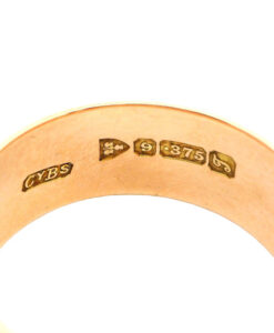 We have carefully cleaned and polished the ring, and it is in excellent condition. The hallmarks are crisp and clear.